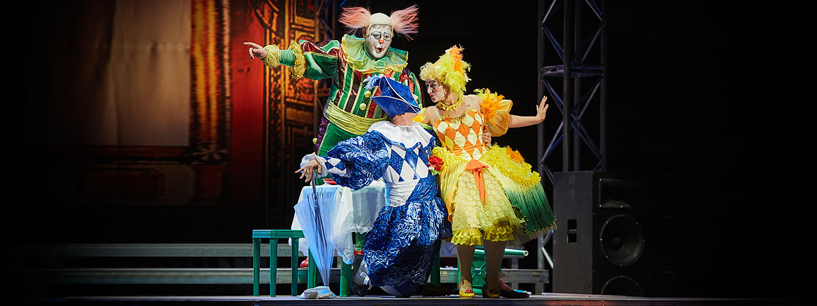 Main parts in 27th April performance will be presented by the following artists: Canio (Pagliaccio) – Roman Zavadsky, Nedda (Colombina) – Nadezhda Nesterova, Tonio (Taddeo) – Alexey Zelenkov, Beppo (Arlecchino) – Kirill Nifontov. Performance will be conducted by Valentin Uryupin.