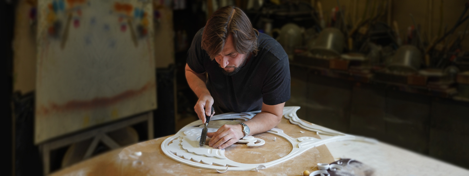 – Если говорить о сценографии, то главным элементом у нас будет блюдце, утопленное в песок. В оформлении спектакля у нас много таких «блюдец» с характерной для всё той же Архангельской губернии росписью по краям. Часть из них – это своего рода экраны, на которых будет проекция.